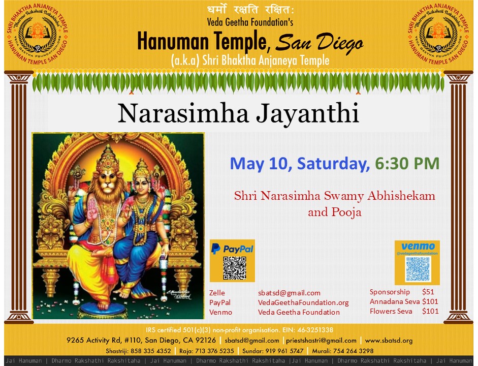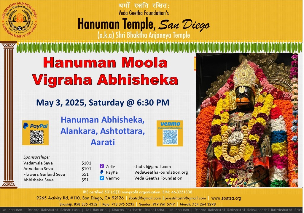 Shri Bhaktha Anjaneya Temple 9265, Activity Rd, Suite #110, San Diego, CA, United States