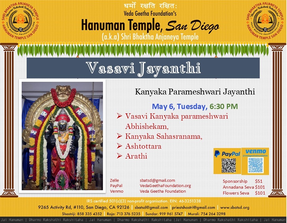 Shri Bhaktha Anjaneya Temple 9265, Activity Rd, Suite #110, San Diego, CA, United States -